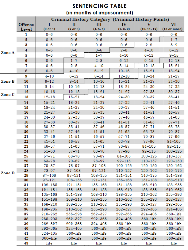 So if you have no criminal history and your offense level is a “21,” and you have no criminal history, your range is 37-46 months. But if you have the worst criminal history, then your range is 77-96 months. In sentencing, you want to be a “zero” when it comes to criminal history.